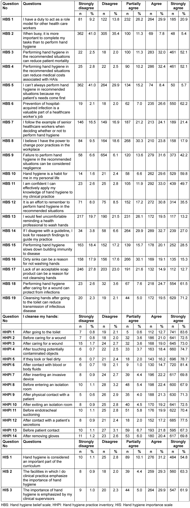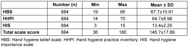 Table 3: Distribution of participants according to their answers to hand hygiene belief, hand hygiene practice inventory and hand hygiene importance