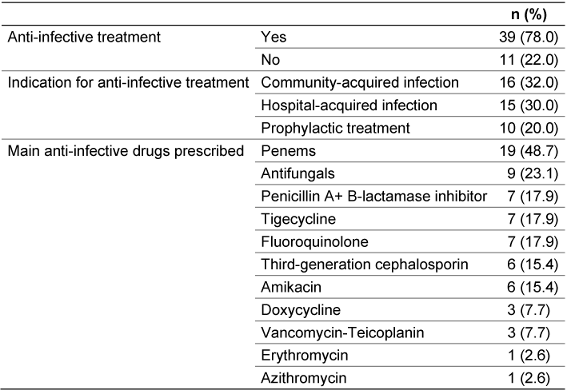 Table 2: Reasons for anti-infective treatment (n=50)