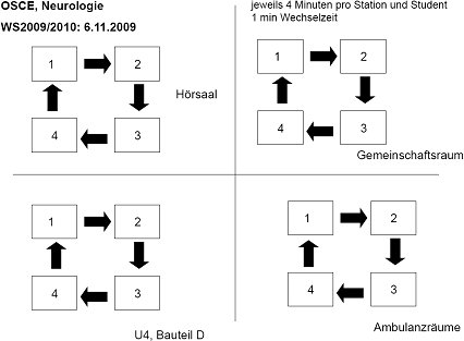 Abbildung 2: Parallelität der Prüfungsparcours in der Klinik für Neurologie