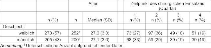 Tabelle 1: Charakteristik der PJ-Studierenden und Zeitpunkt ihres chirurgischen Einsatzes