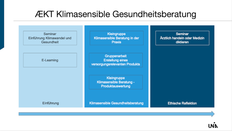 Das ÆKT wurde federführend durch die Institute für Allgemeinmedizin und Ethik und Geschichte der Gesundheit in der Gesellschaft in enger Kooperation mit dem Lehrstuhl Regionaler Klimawandel und Gesundheit für die Durchführung innerhalb des Augsburger Curriculums entwickelt. Es besteht aus vier Präsenz-Einheiten sowie einer Phase von individuellem E-Learning.