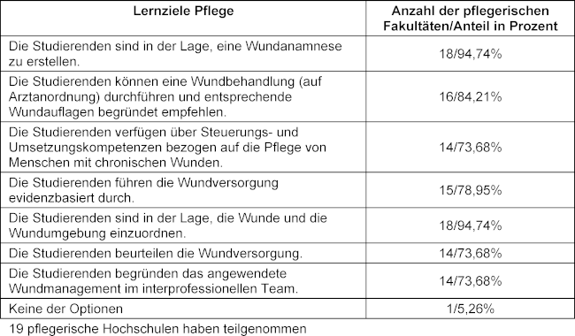 [Stand der interprofessionellen medizinischen und pflegerischen Lehre zur Wundversorgung an deutschen Hochschulen]