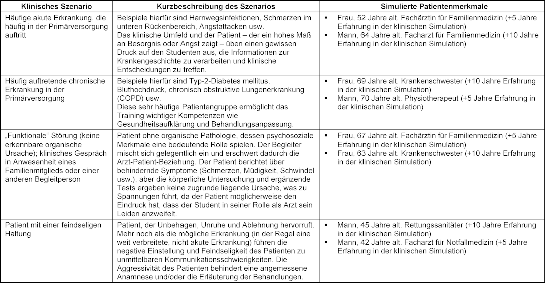 Tabelle 1: Übersicht über klinische Szenarien und simulierte Patientenmerkmale