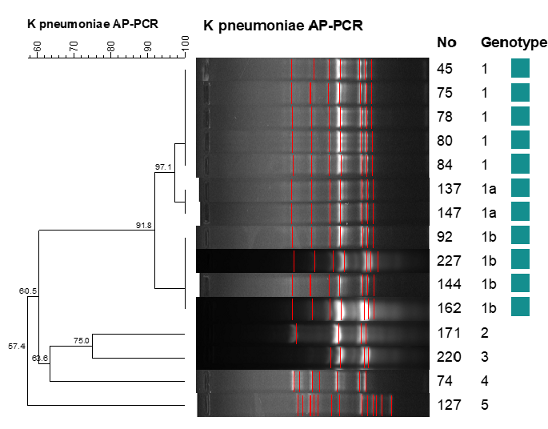 Figure 2: Arbitrarily primed polymerase chain reaction (AP-PCR) results of blaoxa-48-positive carbapenem-resistant K. pneumoniae isolates