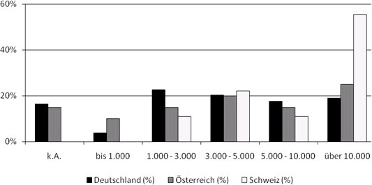 Von allen Weiterbildungsträgern haben 66% eine Anbindung an Universitäten bzw. Hochschulen (keine Anbindung: 30%, Rest: keine Angabe). Im Ländervergleich zeigt sich allerdings, dass in der Schweiz (100,0%) und Österreich (75,0%) ein höherer Grad an Anbindung an akademische Institutionen vorhanden ist.