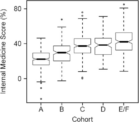 Figure 3: Knowledge growth on “Conservative Medicine” in the MeCuM Results of individual cohorts (see Figure 1 for definition).