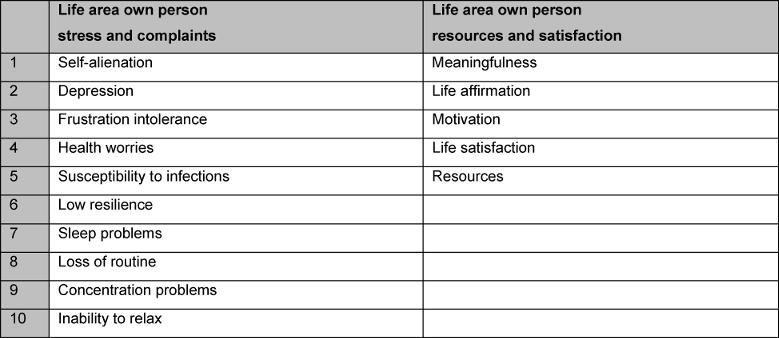 Figure 5: Summary of scale constructs for the scales physical, cognitive and emotional complaints (BOSS II)
