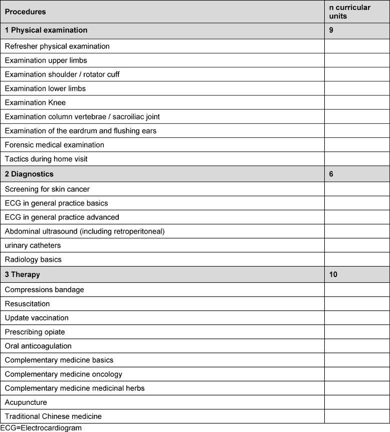 Table 3: Curricular units which are not part of the competency-based general practice curriculum