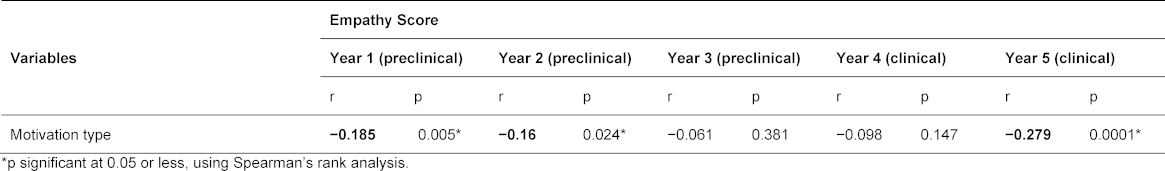 Table 3: Associations between empathy and motivation (Spearman’s rank correlation coefficient)