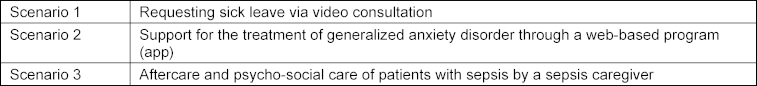 The medical sociology seminar takes place in the fourth pre-clinical semester at the University of Lübeck. It consists of two parts. The first part deals with the German health care system and the second part deals with the topic of digitization and its importance for the doctor-patient relationship [14]. So far, the subject of the German health care system has been taught in small groups in the form of seminars. In order to promote interaction and critical reflection by the students in a targeted manner, the teaching was expanded to include a simulation game. Three sample scenarios were developed for the simulation game (see table 1 [Tab. 1]). The scenarios were chosen to reflect the various health care institutions and out-patient and in-patient settings.