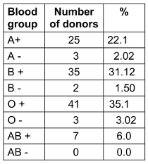 Table 2: The blood group’s distribution