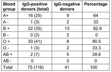 Table 7: Blood groups of IgG-seropositive donors