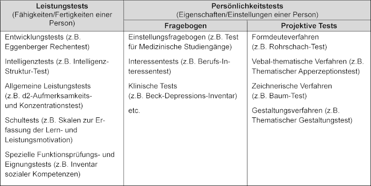 Tabelle 1: Psychologische Test- und Fragebogenverfahren – ein Überblick mit Beispielen [3]