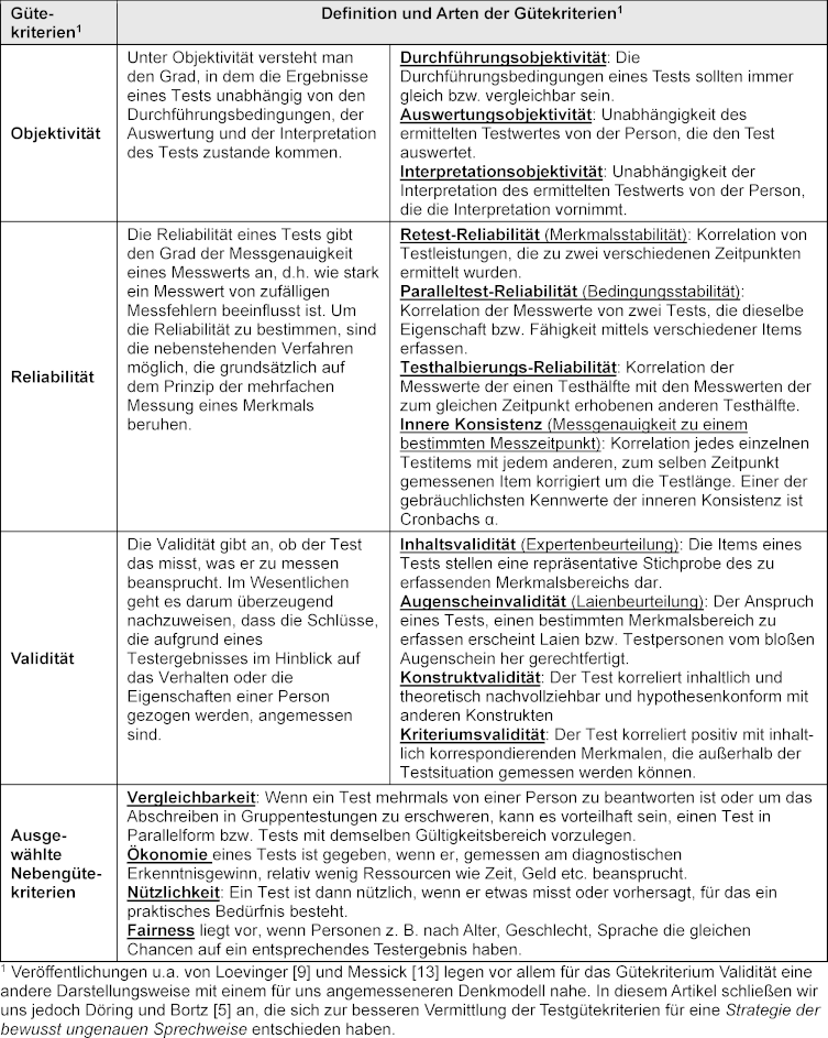 Tabelle 2: Traditionelle Test-Gütekriterien [2], [5], [10], [19]