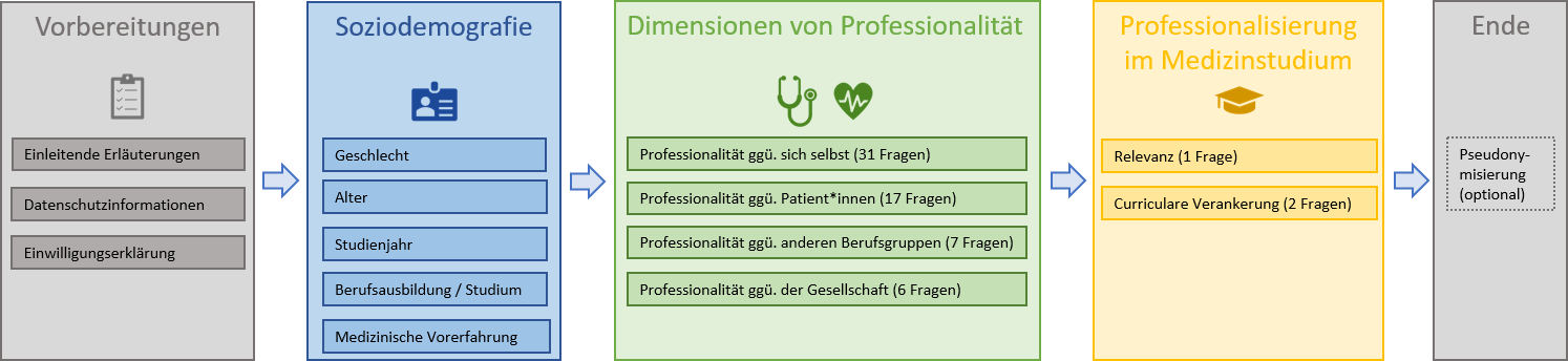 professionelle ärztliche Identitätsbildung, Professionalität, Professionalisierung, medizinische Lehre, ärztliche Identität, ärztliche Rollen, Kompetenzen, Fragebogen