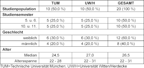 Insgesamt nahmen 20 Studierende an der Studie teil. Personenbezogene Kenndaten sind in Tabelle 1 [Tab. 1] beschrieben.
