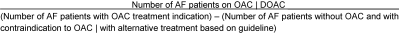 We calculated crude and adjusted OAC treatment rates based on clinical and claims data. Crude OAC rates were defined as: