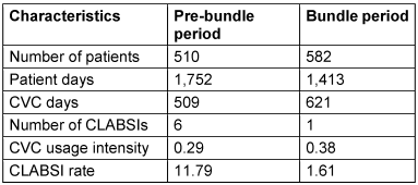 Table 1: CVC-associated bloodstream infection rates during the study period