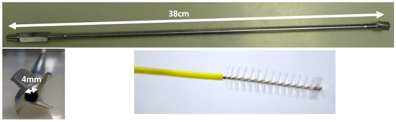 Figure 1: Photos of hollow reamers used for the study and wash brushes used to clean hollow reamers