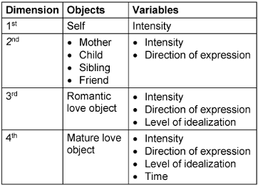 The two dimensions of projected self-love are the intensity of the feeling and the direction of expression or projection [4].