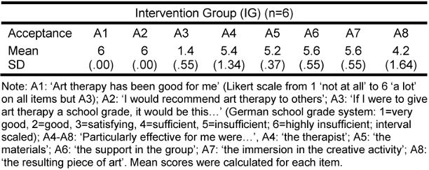 Table 2: Mean values of acceptance, measured after eight weeks of art therapy