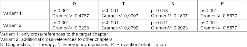 The CR between the chapters of NKLM 1.0 and NKLM 1.0 (neo) are plotted in figure 2 [Fig. 2]. There is a clear increase in the density of the (also bidirectional) CR, although the chi-square test continues to show an inhomogeneous distribution in NKLM 1.0 (neo). NKLM 1.0: p<0.001/Cramer’s V: 0.513, NKLM 1.0 (neo): p<0.001/Cramer’s V: 0.387.