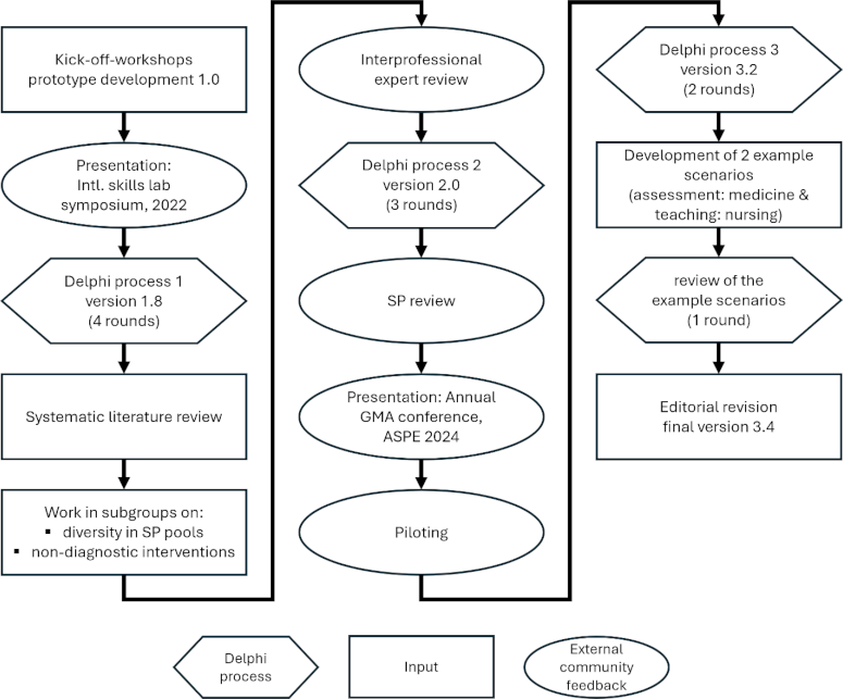 [23] Peters T, Bauer D, Hahn S, Hempel L, Fritz AH, Pippel E, Reck L, Schönbauer A, Strohmer R, Thrien C, Weber M, Weiß M, Zimmermann A. A modular interprofessional template for SP role scripts - Results of a multi-stage consensus process in German-speaking countries (Unveröffentlicht). In: 2024 ASPE Annual Conference; 2024 Jun 23-26; Vancouver, Canada.