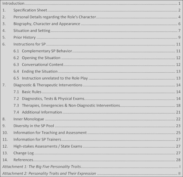 The development process shows that the heterogeneity of SP programs in regard to institutions and procedures in the various health professions influences the structure and content of the role scripts and thus confirms the findings of the scoping review by Davies et al. [7].