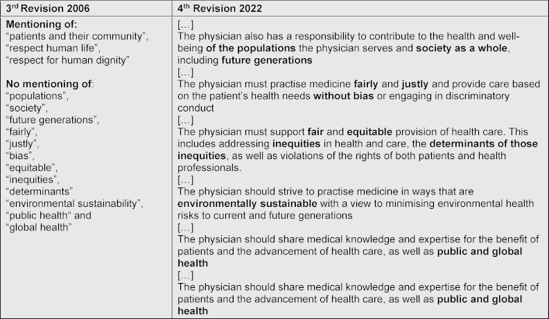 Table 1: Comparison of parts of the 3rd (2006) and 4th (2022) version of the WMA International Code of Medical Ethics