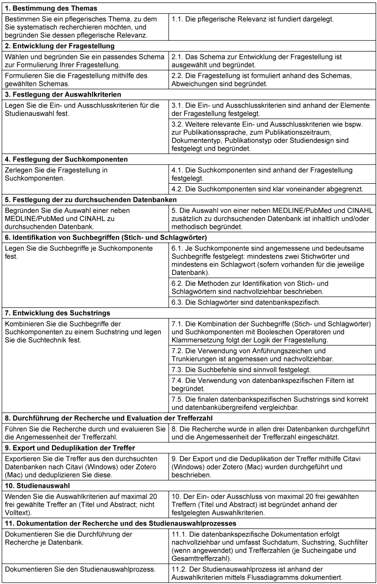 Tabelle 2: Inhaltliche Schrittabfolge und Bewertungskriterien für den Leistungsnachweis