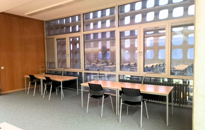 - Gruppenarbeitsraum (große Gruppentische aus dem unteren Lesesaal in den neuen Raum verlegen)
