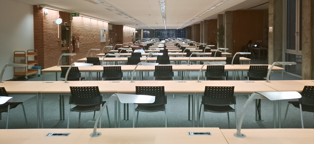Die Baumaßnahme fand im oberen Lesesaal statt: Zunächst gab es neuen Fußboden mit einem neuen Stromkonzept. Jeder Arbeitsplatz wurde mit Steckdosen versehen. Zeitgleich wurden die Deckenabhängungen kontrolliert und erneuert, was aufgrund der Bausubstanz nicht unproblematisch war. Nach Abschluss der Arbeiten wurde Teppich verlegt und neue Tische und Stühle aufgestellt. Die Aufstellung wurde auf Wunsch der Studierenden vorgenommen.
