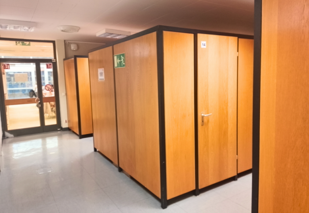 - Ein zurzeit ungenutzter Raum mit derzeit nicht genutzten Lernkabinen