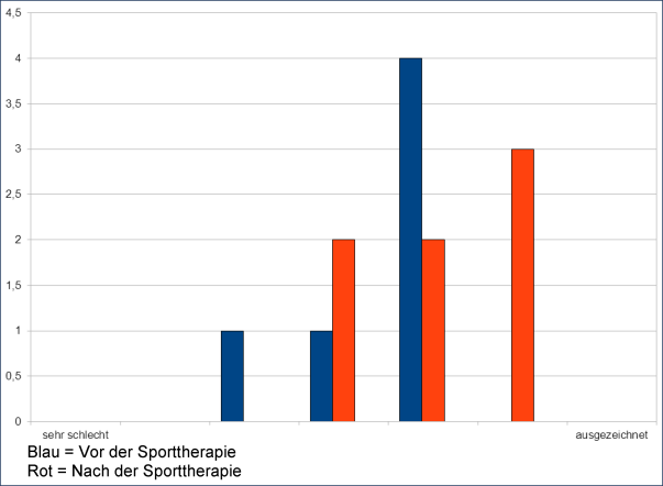 Die Lebensqualität wurde durch Lebensqualitätsbögen (QLQ C-30) zu Beginn und am Ende der 1-jährigen Sporttherapie gemessen. Dies war bei insgesamt 6 Patienten möglich.